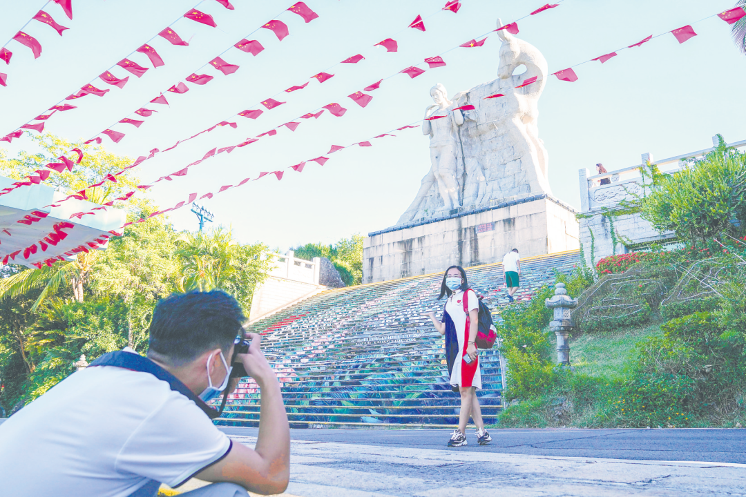 海口火山泉休闲农庄、冯塘绿园、芳园国际艺术村、898艺术村等乡村旅游点受到市民游客青睐。儋州在东坡书院开展研学活动,让游客体验浓厚东坡文化,推出渔家庆国庆,泊潮寻秘宝,探寻百年渔村赶海之旅活动,让游客体验出海捕鱼,沙滩寻宝海边茶歇。云舍松涛开展农场游学,准备了花艺、扎染手作等活动极大地丰富了游客的休闲体验;琼中将最具代表性的景区景点、民宿、露营地与绿橙采摘进行线路整合,推出“红色之旅”“研学之旅”两条一日游线路。此外,各地的人气市集、营地电影、露天啤酒广场、小吃夜市也成为游客休闲打卡地,新产品、新业态、新玩法为城市凝聚人气,成为拓宽城市休闲消费空间的抓手。 主题宣传推广提振市场信心 旅游市场回暖迹象明显 国庆期间,各地旅游部门统筹疫情防控和经济复苏,积极整合行业资源,通过机票特惠、门票减免、免税品打折促销等多种举措吸引人气,努力让受疫情影响的旅游市场走上回暖路。 游客在三亚鹿回头风景区拍照打卡。武威 摄 海口市旅文局携海口万豪、希尔顿等6大酒店感恩最美逆行者,面向本轮疫情期间参与抗疫付出和作出贡献的基层工作者推出性价比高、价格优惠的“乐享国庆·欢游海口”套餐,扩大假期旅游市场消费需求。三亚市旅文局、三亚市旅游推广局联合发布了《一人一本国庆岛民玩转三亚惠惠游》线上产品宣传手册,其中涵盖酒店、景区、民宿、游艇帆船、餐饮等旅游企业近120家。国庆节期间,三亚17家旅游景区中,恢复开园的旅游景区达13家,包括南山、大小洞天、天涯海角和海昌梦幻海洋不夜城等。文昌举办2022年国庆旅游乐购嘉年华,借助国庆旅游消费热度,以航天、地域特色文化为载体,通过多元化“旅游体验+惠民促销”的方式,策划推出“海岸露营会”“椰林车尾箱市集”“趣味闯关赛”“紫贝之夜”等主题活动,积极打造具有文昌本土特色和大众参与性强的城市旅游IP,激发消费活力。陵水推出2022年“冬逢陵水·暖潮回岸”促进旅游发展提振消费市场专项营销活动。定安启动全域自驾游打卡赛,依托定安生态、人文、美食等特色优势,体旅融合乐趣多。琼中开展“琼中旅文2022年线上推广季”活动和琼中精品民宿线上推介活动,两场直播在线观看人数达到32000人次。保亭5A级景区呀诺达雨林文化旅游区、槟榔谷黎苗文化旅游区推出海南居民免费入园优惠,多家酒店推出雨林狂欢套餐,同时为刺激旅游消费开通了“保亭人游保亭”乡镇旅游免费班车,提升游客出游意愿。