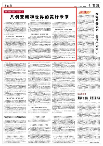 博鳌亚洲论坛2024年年会期间,与会人士共商亚洲和世界发展大计,为促进本地区乃至世界和平、稳定、繁荣贡献智慧和力量。与会人士普遍认为,坚持务实合作、实现互利共赢是亚洲各国实现可持续发展的必然选择。中国作为亚洲大家庭重要成员,坚定不移推进高水平对外开放,以发展新质生产力引领高质量发展,积极推动地区合作,为共创亚洲和世界的美好未来作出了重要贡献。